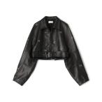 レザージャケット ライダース ラムレザーアイレット クロップドブルゾン レディース