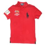 良品 POLO RALPH LAUREN ポロ ラルフローレン ポロシャツ カットソー 半袖 ロゴ 刺繍 ロシア イギリス 国旗サイズM 赤 レッド メンズ 古着 中古