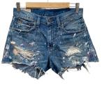 美品 POLO RALPH LAUREN ポロラルフローレン CROSBY SHORT ペイント加工 デニム ショートパンツ W25 ブルー レディース 古着 中古