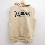 L/古着 ラルフローレン ポロジーンズ ノースリーブ ブランド スウェット パーカー メンズ ビッグロゴ ベージュ カーキ 25apr