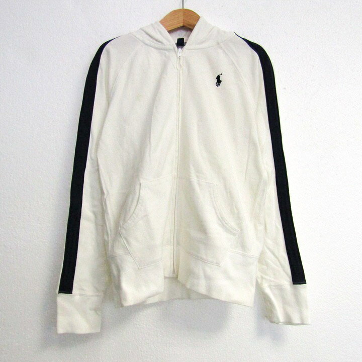 ラルフローレン パーカー トップス ジップアップ 袖ライン キッズ 男の子用 140サイズ ホワイト RALPH LAUREN 【中古】