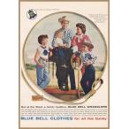 ブルーベル ジーンズ レトロミニポスター B5サイズ ◆ 複製広告 デニム BlueBell ラングラー カウボーイ 家族写真 USAD5-649