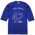 デッドストック★80s Wranglerラングラー OKLAHOMA 42 ナバリング コットン フットボールTシャツ 青 M★ビンテージ オールド ウエスタン