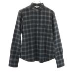 HELMUT LANG ヘルムートラング ウールブレンド チェック柄 長袖 ノーカラーシャツ M グレー系 レディース 古着 中古