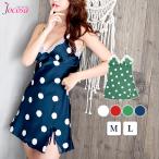 レース ドット ルームウェア パジャマ 部屋着 キャミソール ワンピース セクシーランジェリー ホワイト レッド グリーン ネイビー M L JOCOSA 6206