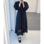 ワンピース ランタンスリーブ レースドッキングボリュームワンピース