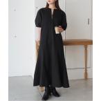 ワンピース 「前後2way」ランタンスリーブハーフジップワンピース