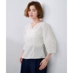 ブラウス シャツ シアー切替ランタンスリーブブラウス(イージーケア・透けにくい・ストレッチ素材・UVカット) レディース