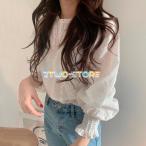 オーガンジー切り替えランタンスリーブプルオーバー レディース