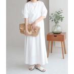 ワンピース 「Eclat one」ランタンスリーブ 表面感 Aラインワンピース