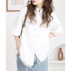 ブラウス シャツ フリンジ切替ランタン袖シャツ レディース
