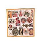 エルメス カレ90 LANTERNES BALLONS & COCARDES ランタン 風船 帽章 スカーフ ベージュ マルチカラー シルク レディース HERMES 【中古】