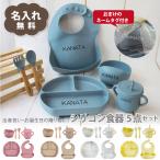 シリコン食器セット ギフトセット 5点 ベビー 名入れ ランチプレート ビブ ストローマグ ボウル スプーン&フォーク 出産祝い 誕生日