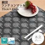 ランチョンマット 布 約35×45cm 北欧 おしゃれ 単品 洗える テーブル 食事 食卓 綿混 麻混風 ツリー柄 グレー インテリア テーブルマット