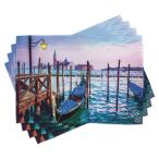 【並行輸入品】Ambesonne ベネチア ランチョンマット 4枚セット 有名なイタリアの都市建築の夢のような夕景 水とゴンドラ 洗えるファブリ