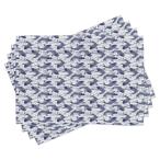 【並行輸入品】Ambesonne 魚ランチョンマット 4枚セット 日本の鯉鯉 波模様の背景 祖先の動物文化 洗濯可能なファブリックプレースマット