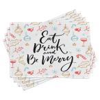 【並行輸入品】Ambesonne Eat Drink and Be Merry ランチョンマット 4枚セット クリスマスのお祝いの言葉 ヤドリギ