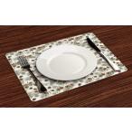 【並行輸入品】Lunarable 松ぼっくり ランチョンマット 4枚セット 手描き 松の木の枝とセピアコーンの風景イラスト 洗えるファブリック