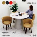 ダイニングセット 4人 丸テーブル セラミック天板 110 北欧風 おしゃれ モダン ファブリックチェア 円形 ホワイト