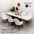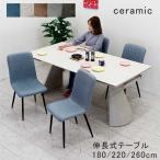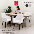 3000円OFFクーポン ダイニングテーブルセット 伸長式 4人 180 220 260 セラミック おしゃれ 白 ファブリック 北欧 開梱設置無料