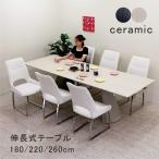 3000円OFFクーポン ダイニングテーブルセット 6人 伸長式 180 220 260 セラミック おしゃれ 白 ファブリック チェア 開梱設置無料