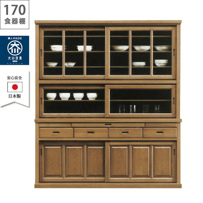 【全商品に使える10%offクーポンあり!!】 食器棚 キッチン収納 完成品 カウンター収納 170cm幅 キッチンボード ガラス戸 引き戸 タモ材 幅170cm 170 引き出し タモ ウレタン塗装 木目 和風 ガラス扉 収納棚 ダイニングボード 開梱設置