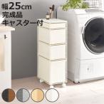 ランドリーチェスト 幅25cm 4段 スリム 引き出し 隙間収納 キャスター付き 木目調天板 スチール ポリエチレン ( チェスト ラタン調 すき間 キャスター )