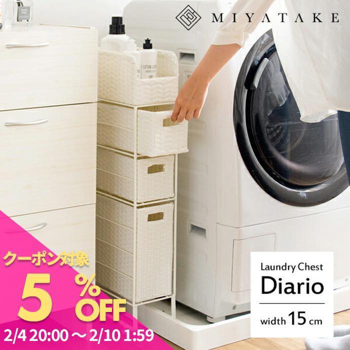 【5と0のつく日 5%OFFクーポン】ラタンランドリーチェスト ランドリーボックス 洗濯かご ランドリーバスケット おしゃれ サイドチェスト ランドリーラック 洗面所 すき間収納 隙間 幅15cm 防水パン