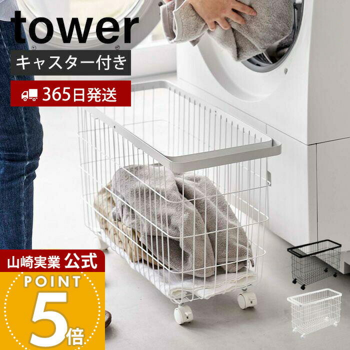 【365日出荷&当店限定特典付き】山崎実業 ランドリーワゴン+バスケット ランドリーワイヤーバスケット M L タワー tower 公式 3点セット 単品 スリム キャスター付き ランドリーラック 洗濯かご ランドリー収納 ホワイト ブラック