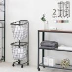 (タイムセール中) ランドリーラック 2段 おしゃれ 丸型バスケット2個 キャスター付き