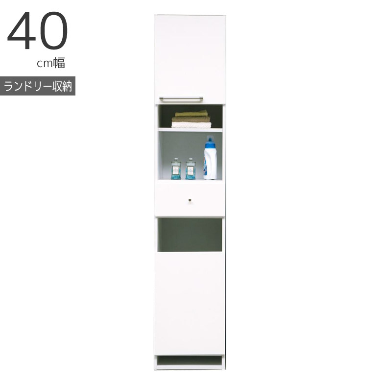 【全商品に使える12%offクーポンあり!!】 ランドリーチェスト 40cm幅 木製収納 薄型 おしゃれ ランドリーラック 縦型 サニタリー収納 幅40cm シンプル ランドリー収納 引出し 開き扉 エナメル塗装 カゴ付き 脱衣かご 浴室収納 収納家具 木製 白 ホワイト