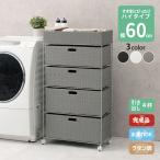 (タイムセール中) ランドリーワゴン 幅60.5cm 4段 キャスター付き 完成品 ハイタイプ ラタン調
