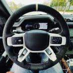 【並行輸入品】ランドローバー 黒革スエードラップディスカバリー 5 ディフェンダー 2020-23 手縫製ステアリングホイールカバー