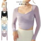 ヨガウェア トップス 長袖 レディース バックデザイン チュール 切替え カップ付き ヨガトップス ホットヨガ ヨガウエア ヨガ ピラティス おしゃれ かわいい ス