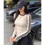 tシャツ 「お気に入り3000人突破!」スタイルアップ ラグランサイドライン リブ ロンT レディース