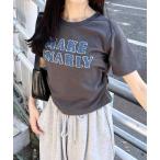 tシャツ デニム貼付サイドギャザーTシャツ レディース