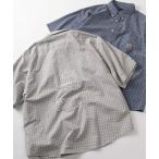シャツ 「75」「Philip Lumbang/フィリップ・ランバン」バックロゴデザイン ミニチェック ボタンダウン 半袖シャツ/ピスネーム