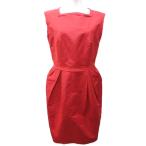 ランバン LANVIN COLLECTION ワンピース スクエアネック タック ノースリーブ ひざ丈 40 約M 赤 レッド 0130 レディース