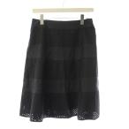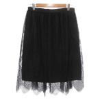 ランバン LANVIN 美品 レーススカート ひざ丈 黒 ブラック スカラップヘム /NL ■ECF004 レディース