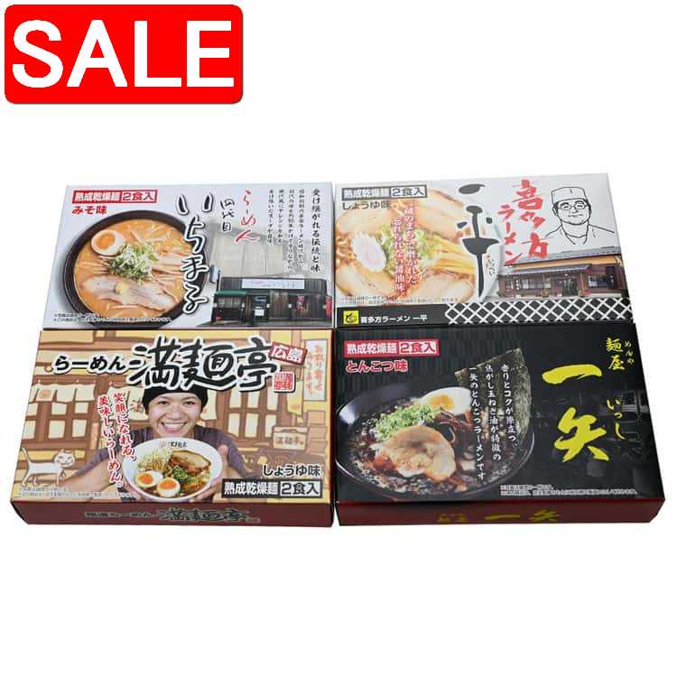 【スーパーSALE 10%OFF!】 全国繁盛店ラーメンセット 乾麺 計8食 札幌 四代目いちまる 味噌味x2 喜多方 一平 醤油味x2 広島 満麺亭 醤油味x2 博多中洲 一矢 とんこつ味x2 ご進物 ギフト 贈り物に 離島配送不可