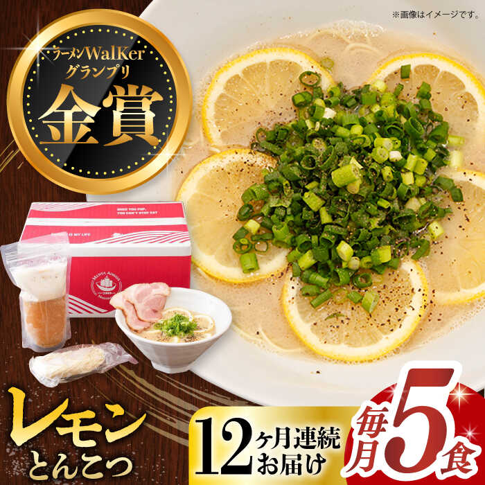【ふるさと納税】【全12回定期便】《2年連続金賞》《殿堂入り》 元祖 レモンとんこつラーメン 5食 長与町/麺也オールウェイズ [EBA042] 豚骨ラーメン とんこつラーメン レモンラーメン 冷凍 生麺 セット スープ らーめん 定期便 定期 ていき