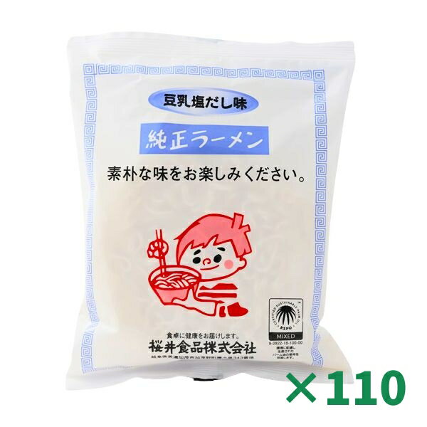【10%OFF】純正ラーメン 豆乳塩だし 104g×110個セット まとめ買い 桜井食品 恒食 インスタントラーメン 乾麺 即席めん 豆乳 塩だし 動物性原材料不使用 植物油 あっさり 素朴な味 ヘルスケア食品 国内産小麦粉 ヴィーガン【楽天スーパーセール】
