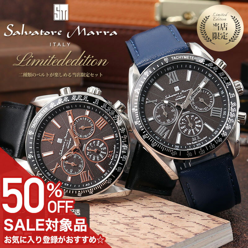 【50%OFF半額 32450円引】 【二種のベルトが楽しめる】腕時計 メンズ 電波ソーラー 革ベルト サルバトーレマーラ 時計 男性 記念日 誕生日 ブランド レザー ベルト 夫 彼氏 恋人 父 ソーラー電波 ソーラー 電波 電波時計 電波腕時計 ビジネス スーツ 仕事 クリスマス ギフト