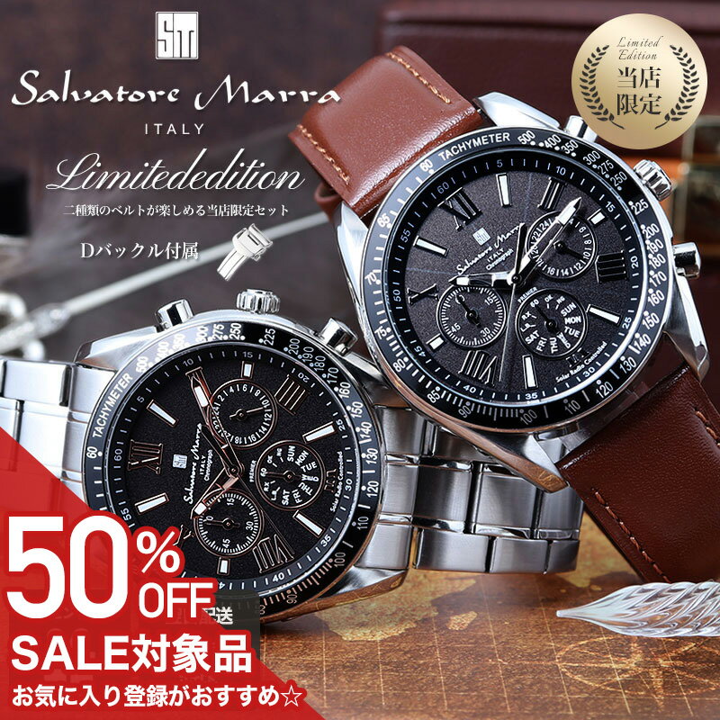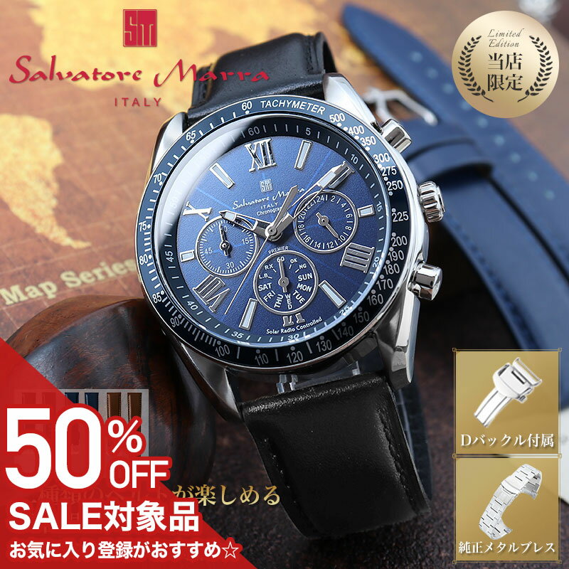 【50%OFF半額 32450円引】【Dバックル付属 レザーベルトセット】腕時計 メンズ 電波ソーラー ソーラー電波 革ベルト サルバトーレマーラ 時計 ソーラー 電波 電波時計 撥水加工 レザー ベルト ビジネス 男性 誕生日 プレゼント おすすめ おしゃれ 人気 ブランド 旦那 恋人