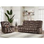 【並行輸入品】HAOMARKETS リクライニングソファソファ2点セット シングルパワー電動リクライニングチェア マッサージ&ヒート付き 3人掛