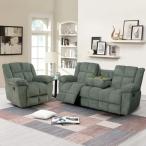 【並行輸入品】SIENWIEY リクライニングソファセット リビングルーム家具用 グリーンコーデュロイリクライニングソファと椅子セット 手動ファ