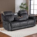 【並行輸入品】Plithzy Power リクライニングソファセット LED付き 呼吸するレザーリクライニングソファセット カップホルダー/コー