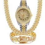 【並行輸入品】NUAYA ダイヤモンドゴールドウォッチ アイスアウトキューバチェーンブレスレット メンズ 18K リアルゴールド/プラチナホワイ