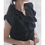 milli de l'air ミリデラール ブラウス レディース フリル ドット 水玉 キーネック ノースリーブ トップス
