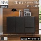 日本製 完成品 サイドボード 幅120cm リビングキャビネット 石目調 ホワイト ブラック 黒 白 スリム スチール脚 リビングチェスト